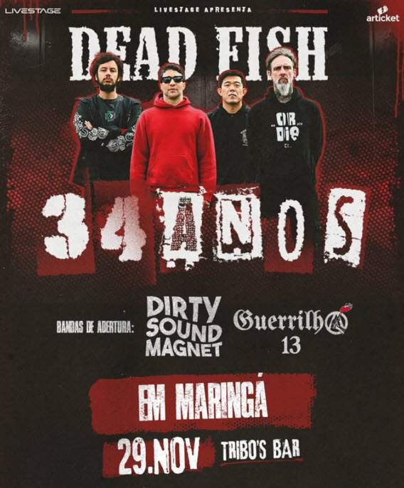 Você encontra os ingressos aqui: https://articket.com.br/e/3387/dead-fish-em-maringa