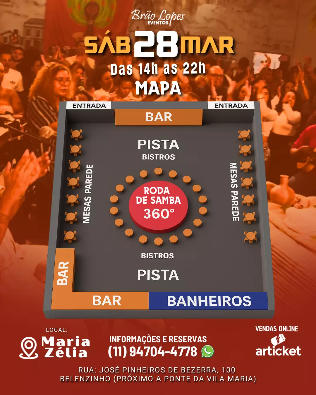 Ingresso válido para 4 pessoas | 4 cadeiras | Por ordem de chegada.