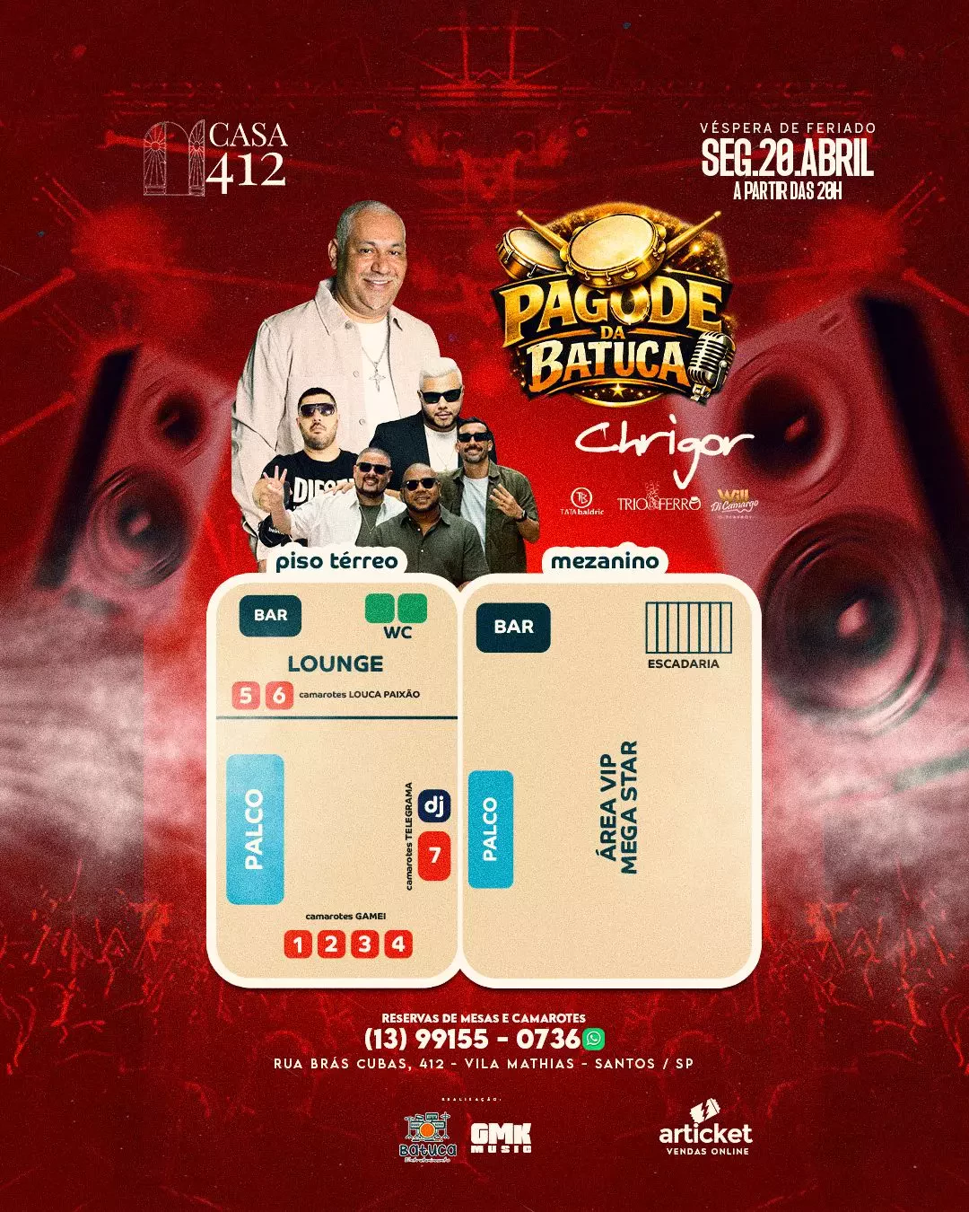 💥 Atendendo a inúmeros pedidos, BATUCA ENTRETENIMENTO em parceria com a CASA 412, trás de volta a Santos, uma das vozes mais marcante do pagode anos 90 para a felicidade dos EXALTAMANÍACOS❗