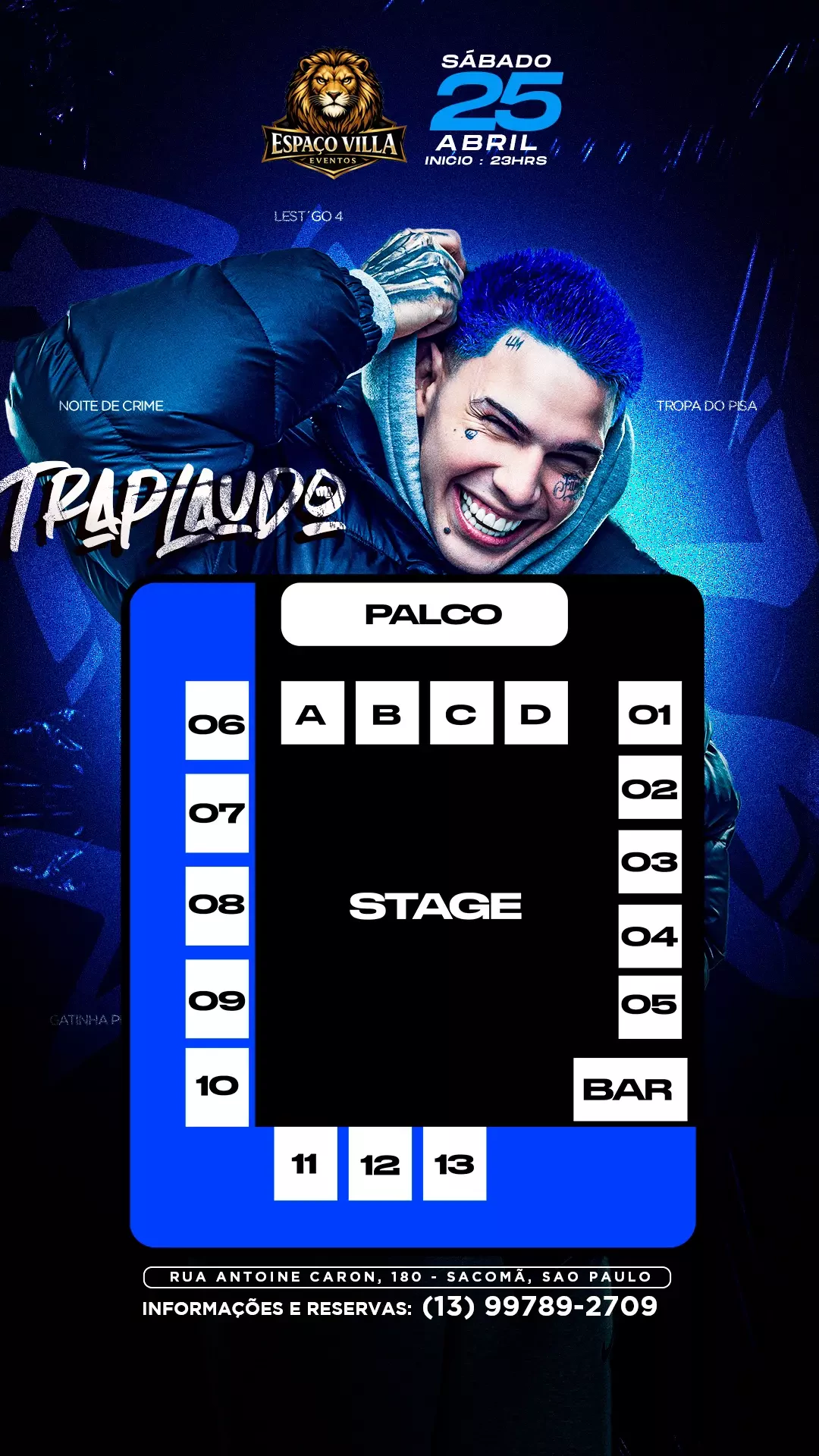 • Frente ao Palco — R$2.000 (consome R$1.000)